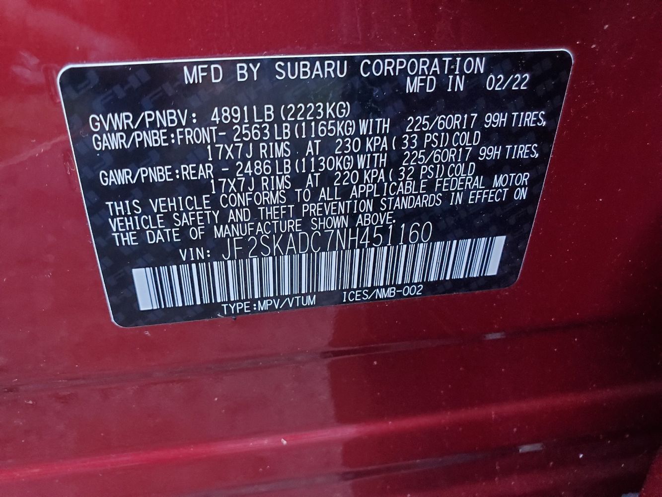 Cargo floor type: Carpet cargo area floor